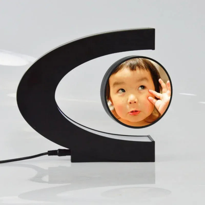 Es ist nicht nur eine originelle Dekoration, sondern auch eine Möglichkeit, eine schöne Erinnerung auf dem Nachttisch zu präsentieren. Sein futuristisches Design wird Kinder und Jugendliche begeistern und er setzt auch einen eleganten Akzent im Wohnzimmer, Schlafzimmer oder Büro. Das Foto dreht sich dank Magnetschwebetechnik, was den Rahmen zu einem echten Blickfang und Blickfang in jedem Interieur macht.