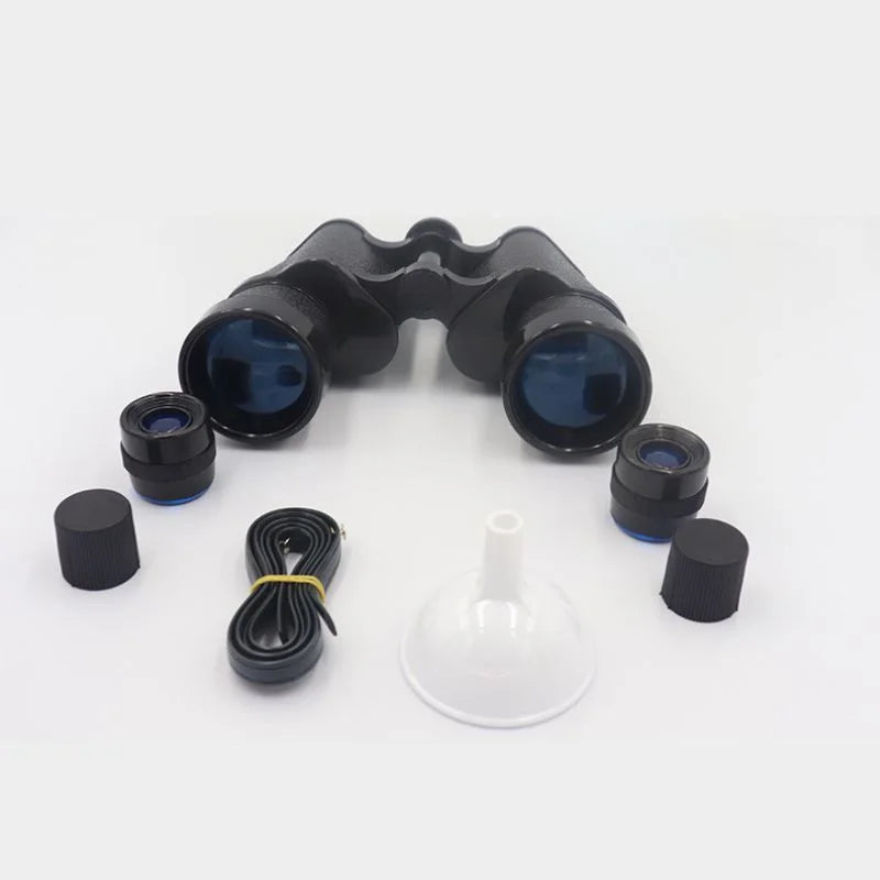 Auf den ersten Blick sieht es aus wie ein gewöhnliches Fernglas, beherbergt aber tatsächlich zwei separate Getränkebehälter mit jeweils 240 ml Fassungsvermögen. Das Set enthält einen Mini-Trichter zum einfachen Befüllen und Schraubverschlüsse zum sicheren Schutz des Inhalts. Der Flachmann aus robustem Kunststoff ist leicht, kompakt und einfach zu tragen.