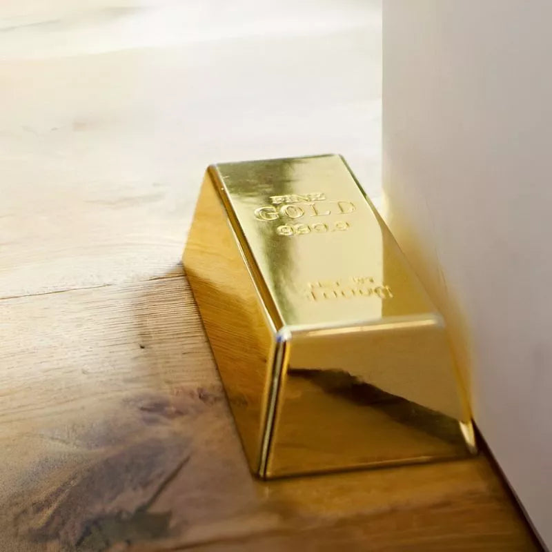 Ein Türstopper aus Goldbarren ist das perfekte Accessoire für alle, die originelle, lustige und einzigartige Gegenstände schätzen. Ihr Butler kann ihn sogar beim Müll rausbringen verwenden – denn das tun Sie nicht allein! Gäste werden sicherlich beeindruckt sein, dass Sie Ihr Gold auf dem Boden liegen lassen – aber Vorsicht, sie könnten eine Geschäftsidee haben!