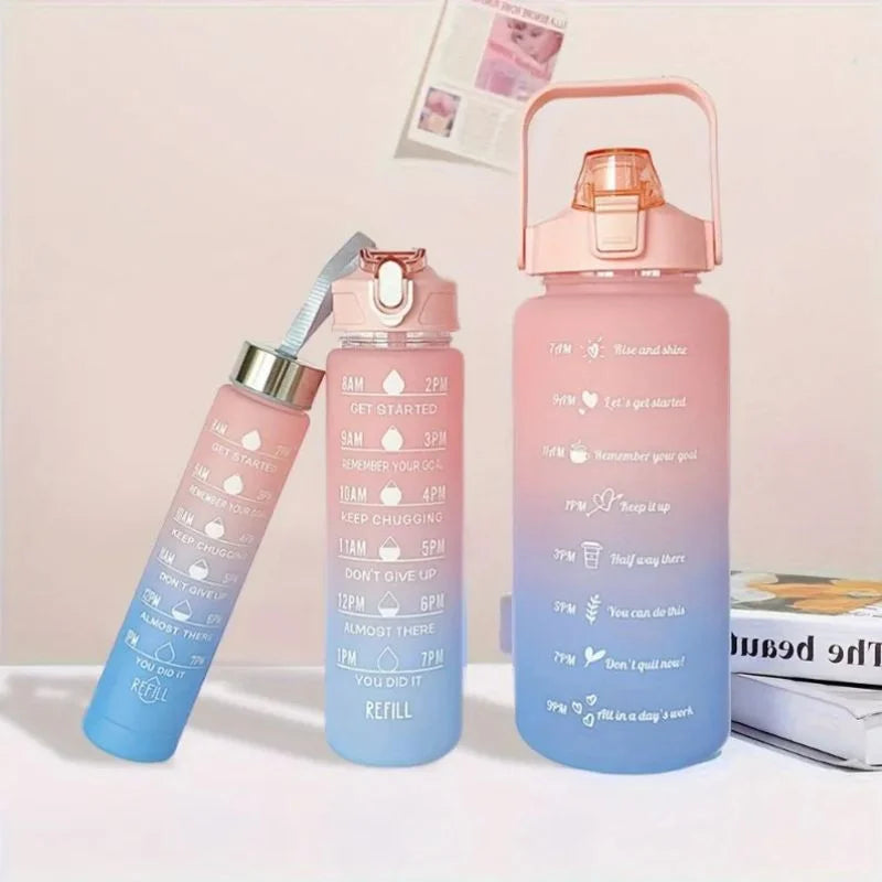 Dieses Set aus drei motivierenden Wasserflaschen ist die perfekte Wahl für alle, die einen gesunden, organisierten und positiven Lebensstil pflegen möchten. Jede Flasche ist mit motivierenden Botschaften bedruckt, die Sie daran erinnern, den ganzen Tag über ausreichend zu trinken. Von „Aufstehen und strahlen“ bis „Du hast es geschafft!“ – jede Botschaft gibt Ihnen Energie und zaubert Ihnen ein Lächeln ins Gesicht.