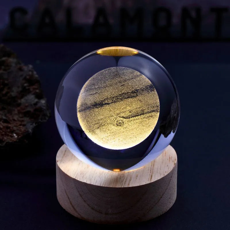 Die Lampe sitzt auf einem Holzsockel und strahlt warmes LED-Licht aus. Das Ergebnis? Eine entspannende, kosmische Atmosphäre, perfekt für Schlafzimmer, Wohnzimmer, Büro oder Arbeitszimmer. Sie ist ein perfektes Geschenk für Astronomie-Enthusiasten und eine stilvolle Ergänzung für jedes moderne Interieur.