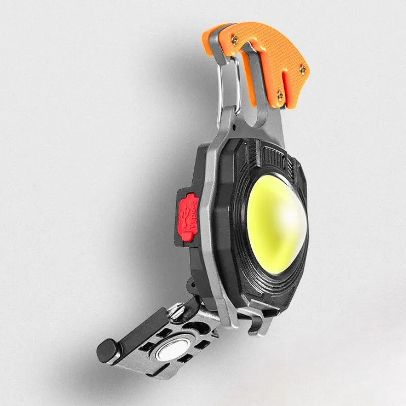 Diese Taschenlampe ist nicht nur eine leistungsstarke Lichtquelle, sondern auch ein multifunktionales Werkzeug. Sie enthält einen Flaschenöffner, ein Feuerzeug, einen Cutter, eine Notfallpfeife, einen Magneten, einen Schraubendreher und ein Messer und ist somit ideal für Wandern, Camping, Nachtreisen und zur Selbstverteidigung. Angetrieben von einem 500-mAh-Akku, lädt sie schnell über USB Typ-C und bietet eine beeindruckende Akkulaufzeit.