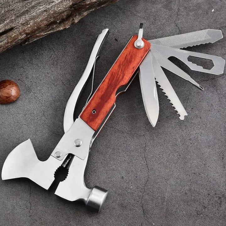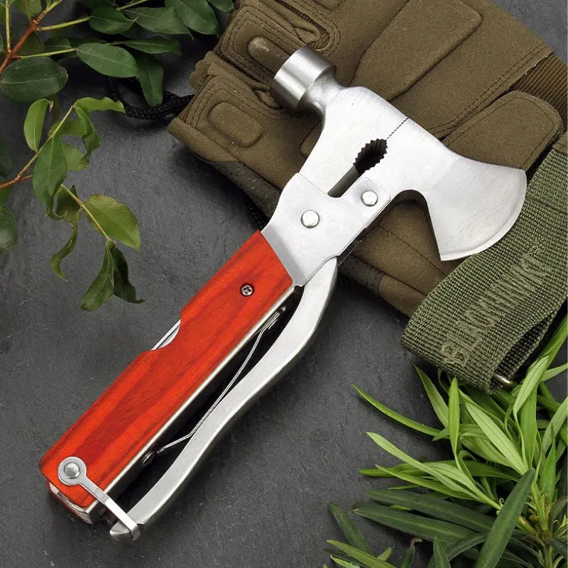 Das Multifunktions-Outdoor-Werkzeug erfüllt alle Ihre Outdoor-Anforderungen – egal ob beim Camping, Angeln, Wandern oder anderen Survival-Aktivitäten. Dieses 16-in-1-Werkzeug aus robustem Edelstahl vereint die Funktionen von Hammer, Beil, Messer, Zange, Schraubendreher, Flaschenöffner und mehr in einem kompakten, leicht zu tragenden Design.