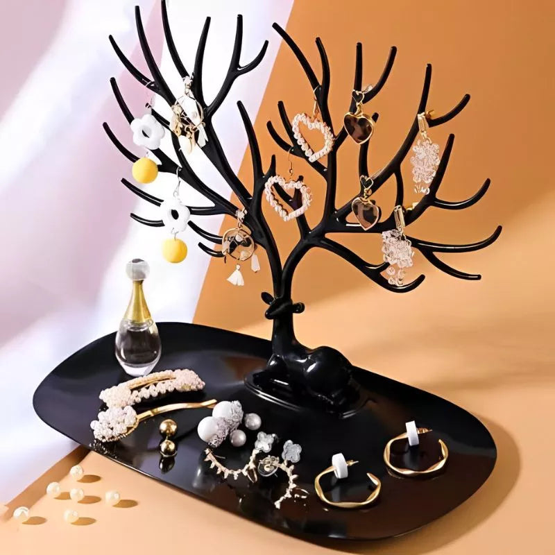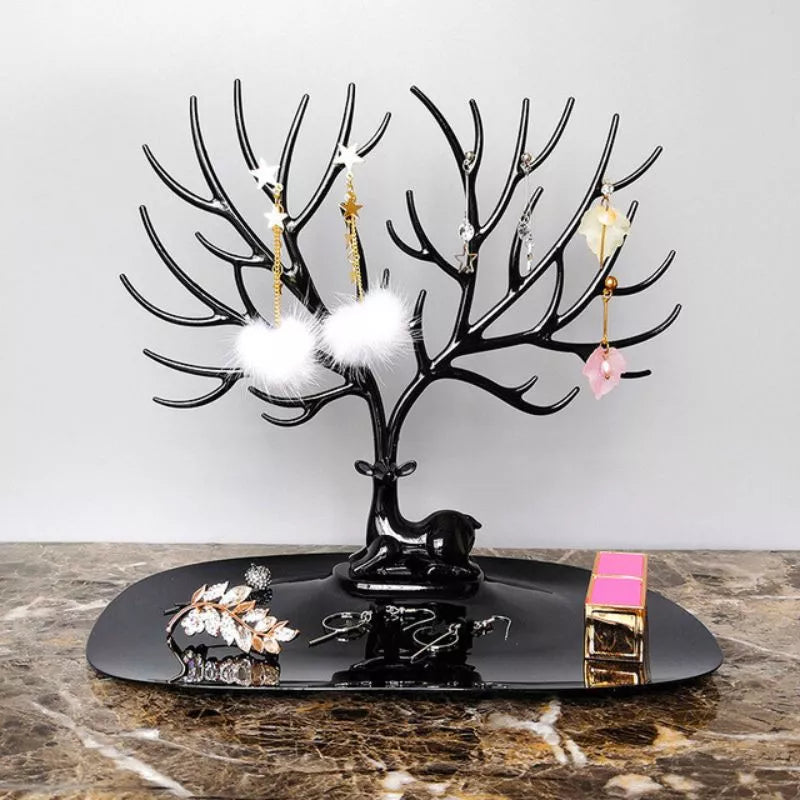 Mit diesem einzigartigen schwarzen Schmuckständer in Hirschform können Sie Ihre Lieblingsschmuckstücke ordentlich und schön präsentieren. Er ist nicht nur ein praktischer Organizer, sondern auch eine stilvolle Dekoration, die jedem Schminktisch, Regal oder jeder Kommode einen Hauch von Klasse verleiht.