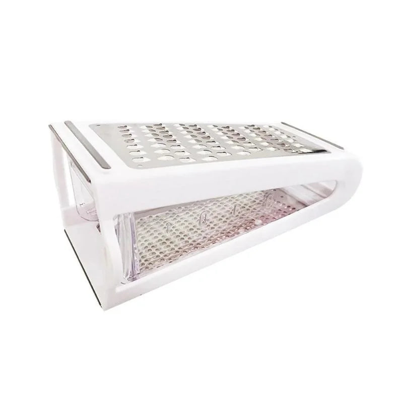 Diese Doppelreibe mit Behälter ist ein modernes und sicheres Werkzeug zum Reiben von Gemüse, Obst, Käse und sogar Schokolade. Mit seinen zwei Arbeitsseiten und dem integrierten Behälter bringt dieses Produkt Ordnung und Effizienz in jede Küche.