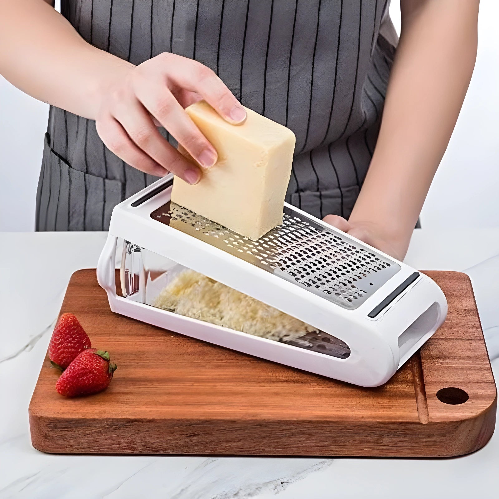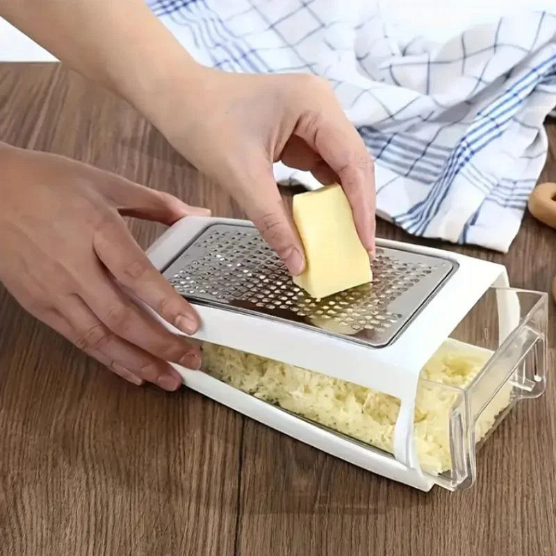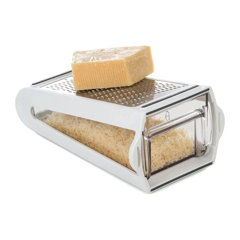 Haben Sie es satt, Käse zu reiben und die Küchentheke zu reinigen? Mit dieser intelligenten Reibe reiben Sie direkt in den Behälter und sparen sich den Käse und den Ärger!