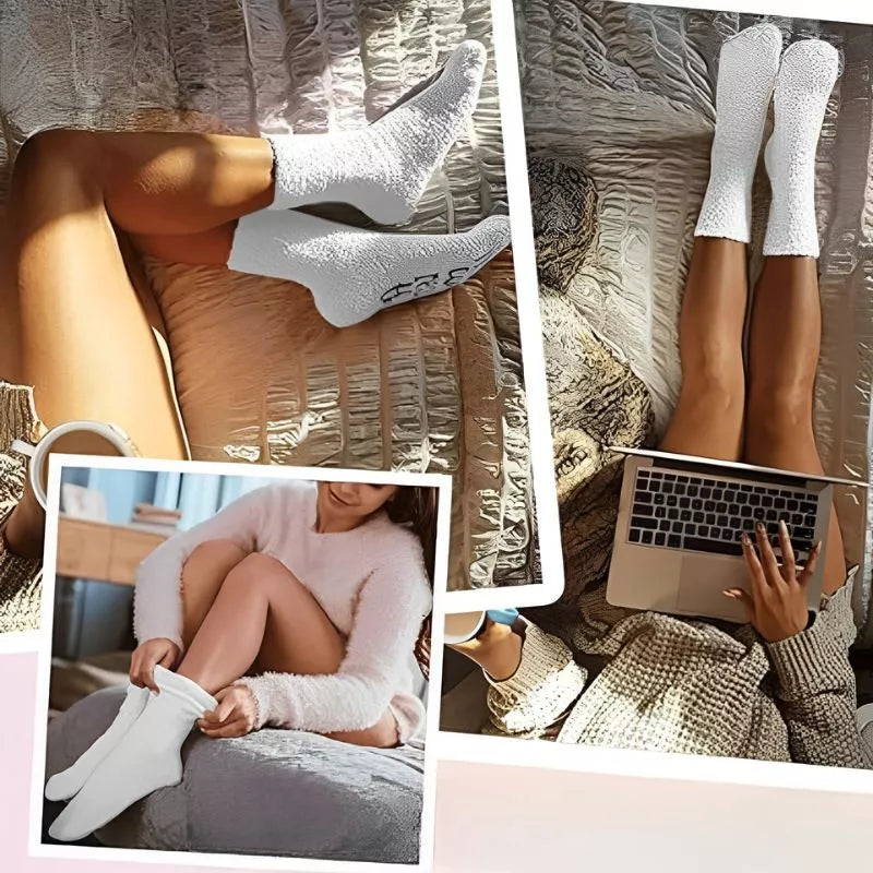 Weich wie eine Wolke und flauschig wie Milchschaum umhüllen diese Socken Ihre Füße mit Wärme und Komfort. Dank der rutschfesten Silikonsohle müssen Sie sich keine Sorgen um rutschige Böden machen – Sie können bequem mit Ihrem Tee in der Hand spazieren gehen.