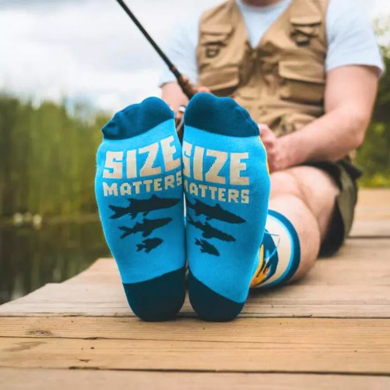 Die lustigen „Size Matters“-Socken machen nicht nur Spaß, sondern sind auch bequem, stylisch und ein toller Gesprächsstarter – besonders für Angelbegeisterte!
