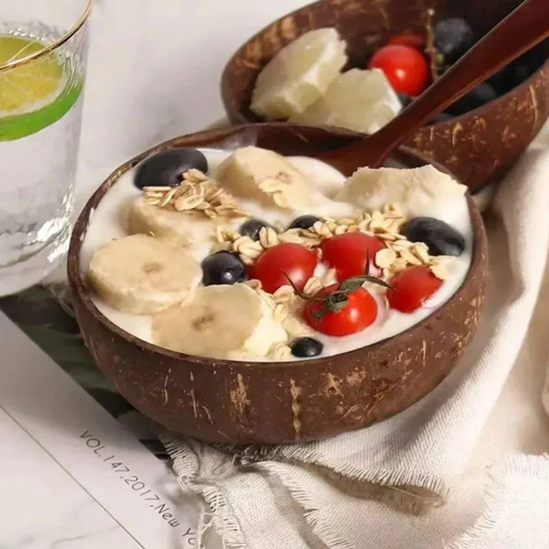 Dieses Set aus zwei Kokosnussschalen ist die perfekte Wahl für alle, die die Natur, minimalistisches Design und authentische Produkte lieben. Jede Schale ist ein Unikat und wird von Hand aus natürlicher Kokosnussschale gefertigt, was ihr einen rustikalen Charme und eine einzigartige Textur verleiht.