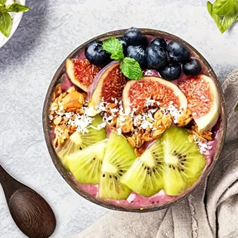 Menschen, die einen gesunden Lebensstil pflegen – eine Smoothie-Bowl in einer Kokosnussschale hat auf Instagram und in Clean-Eating-Küchen bereits Tradition.