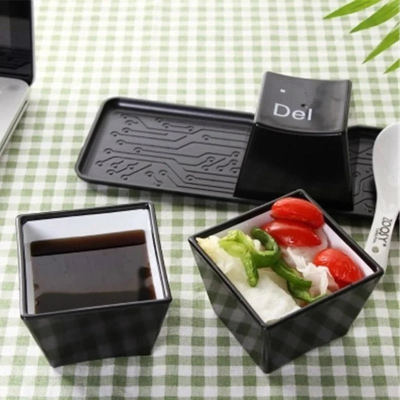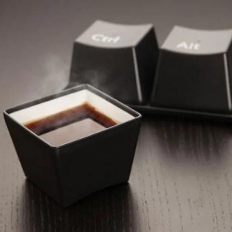 Das Set enthält drei schwarze Tassen in Form von Computertasten: Strg, Alt und Entf sowie eine elegante Ablage im Tastaturstil, die sie sicher hält. Die Ablage ergänzt nicht nur den verspielten Look des Gadgets, sondern verleiht jedem Tisch oder Schreibtisch Stabilität und Stil.