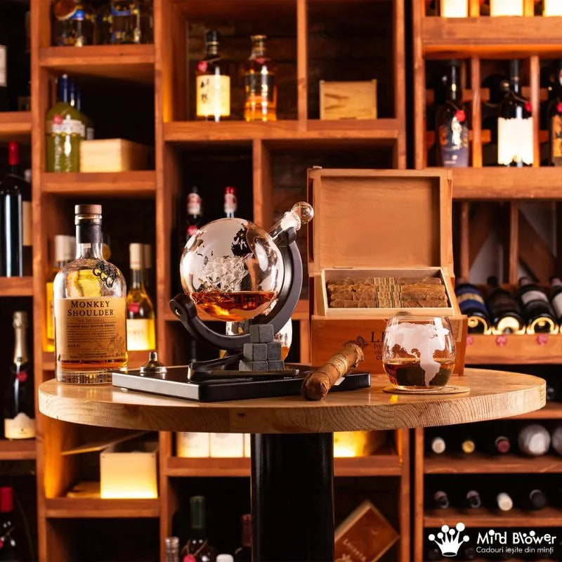 Sie greifen zum eleganten Geschenkset mit der Globus-Karaffe und vier Deluxe-Gläsern. Sie gießen die bernsteinfarbene Flüssigkeit in die Glaskugel und warten, bis sich das Aroma entfaltet. Während der Abend voranschreitet und die Gläser leer sind, inspirieren die Umrisse der Kontinente auf dem Glas zu Gesprächen über zukünftige Reisen. Dies ist nicht nur ein Set – es ist der Beginn von Abenteuern und unvergesslichen Erinnerungen.